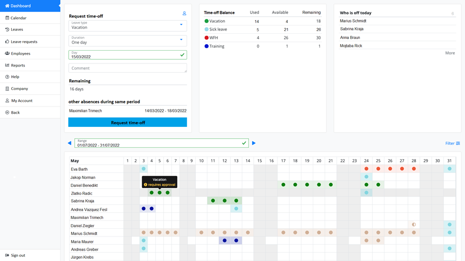 Verwaltung von Urlaubszeiten (Urlaubsgesuch, wie viel Urlaub wird genommen, wann wird der Urlaub beantragt, ob der Urlaub vom Vorgesetzten genehmigt wurde usw.)