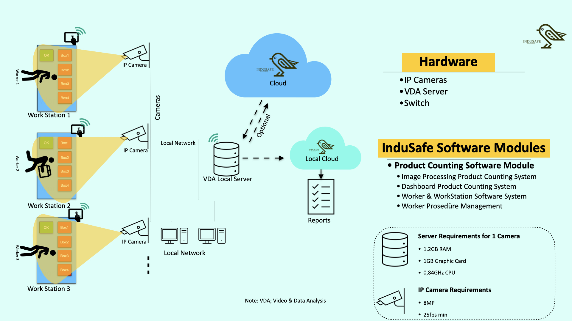 Real-time video stream is taken using cameras placed on Workstations which is then, pro-cessed by image processing-based AI algorithms to count the products that workers are checking and placing in each box. The count data is then sent to Dashboard to track produc-tion status of relevant workstation continuously. Thus, even if workers do not enter count data manually, production line in the factory can be tracked in real time.