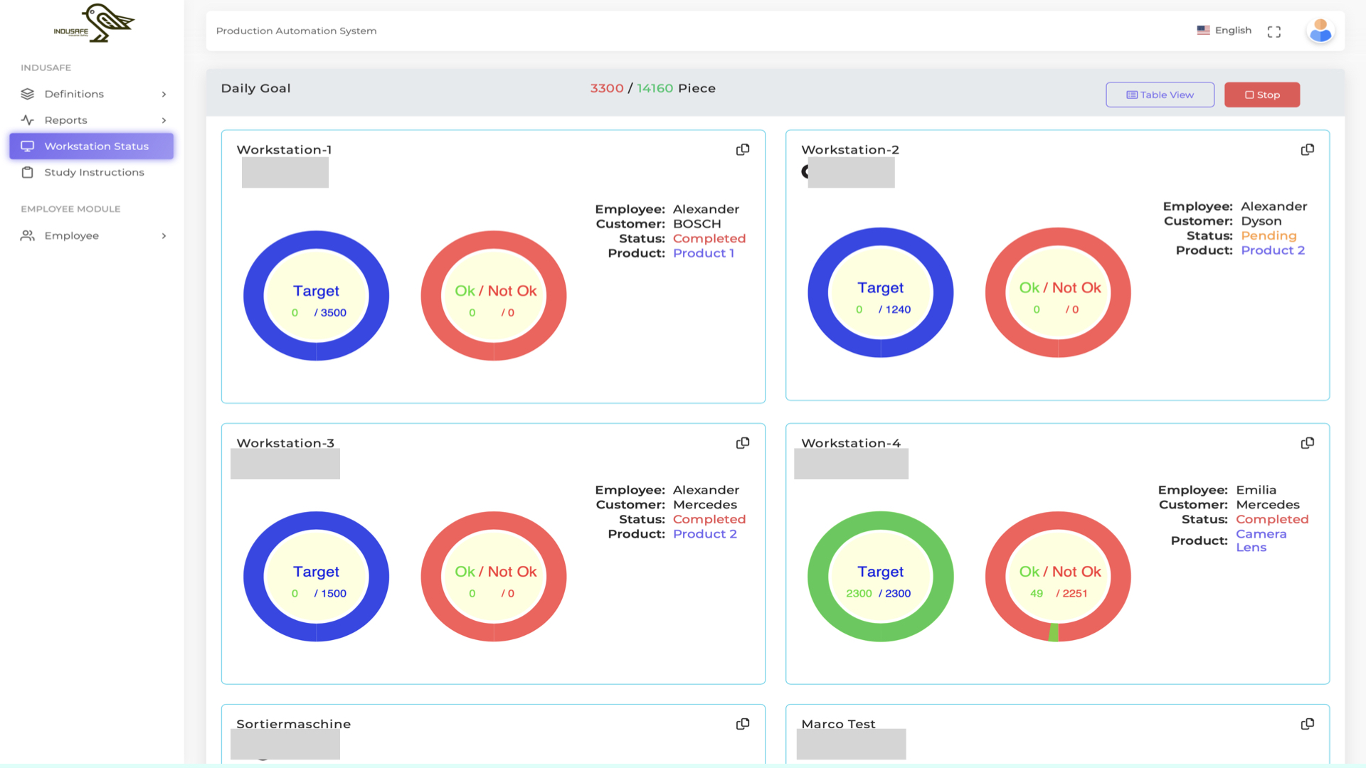 Sobald der Arbeiter, der an der Produktionslinie beteiligt ist, die Fabrik betritt, müssen die Arbeitsaufträge an die entsprechenden Angestellten erteilt werden. Mit diesem Modul können die Vorgänge, wie z.B. an welchem Platz die Mitarbeiter arbeiten, wie lange sie dort tätig sind, welche Aufgaben sie übernehmen usw., den Mitarbeitern via InduSafe Dasboard auf dem Terminal zugeordnet werden. Die Echtzeitsteuerung von Arbeitsplätzen und die automatische Zuweisung von Mitarbeitern zu den entsprechenden Workstations entsprechend dem jeweiligen Arbeitsfluss ist somit äußerst einfach. Das für den jeweiligen Arbeitsplatz zuständige Personal kann mittels InduSafe Dashboard unkompliziert zugewiesen werden und der Arbeitsstatus des betreffenden Personals kann auf dem Dashboard in Echtzeit verfolgt werden.