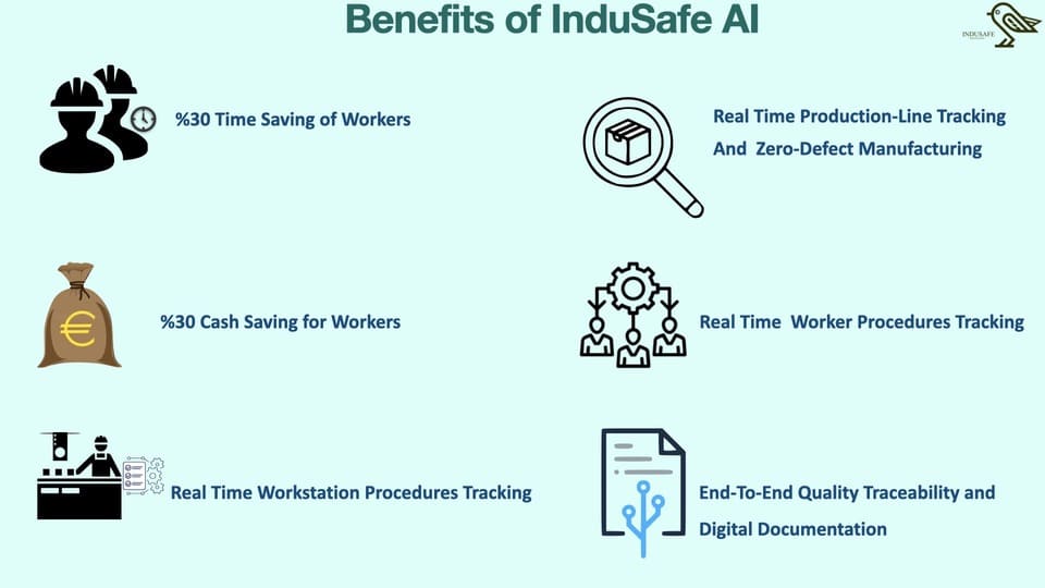 Normally, PLC and similar IoT structures are used to digitize production processes in factories. These structures are insufficient and expensive to digitize every production process. Factories are often looking for unique solutions that they can use in the future. However, the production process of each factory is different from one another and it requires a significant amount of time as well as budget to digitize all processes in a factory. In the production line, there are processes that can be monitored with PLC or IoT devices, but also, manual processes where such solutions cannot be utilized (For example; in quality control factories, workers need to check the products with eyes. In such factories, processes are carried out manually with excel). With InduSafe solutions, it is now possible to digitize all these procedures with the help of IP cameras without any intervention in the production process. In addition, InduSafe AI software solutions can provide a real-time production tracking system where it analyses the production processes that normally be checked by the worker manually.